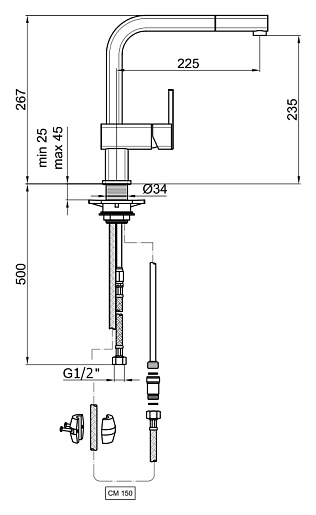 - гибкая подводка G1/2