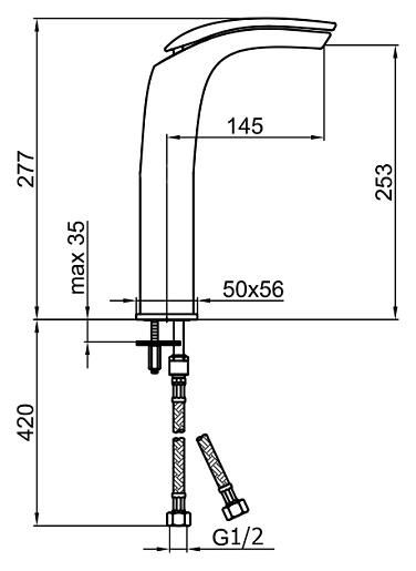 - гибкая подводка G1/2 из нержавеющей стали длиной 37 см