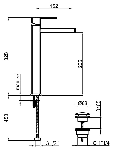 - гибкая подводка G1/2 из нержавеющей стали длиной 70 см