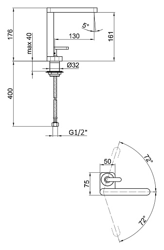 - гибкая подводка G1/2 из нержавеющей стали длиной 37 см