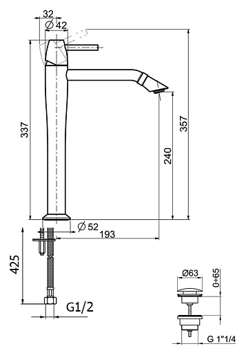 Высота излива, мм: