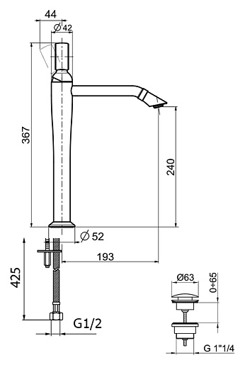 Высота излива, мм: