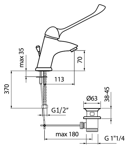 - гибкая подводка G1/2 из нержавеющей стали длиной 37 см