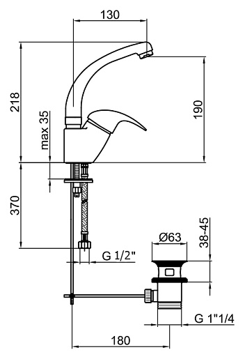 - гибкая подводка G1/2 из нержавеющей стали длиной 37 см