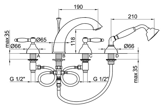Webert Смеситель Dorian DO730101010 золото, на борт ванны