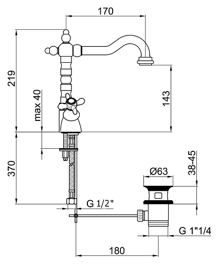 Webert Смеситель Ottocento OT700302010 золото, для раковины