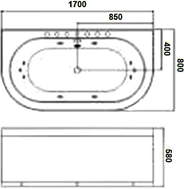 - Гидромассаж: 2 больших джета и 6 маленьких джетов.