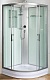 У этой модели нет крыши, но ручной душ можно использовать как верхний: для этого предусмотрена специальная штанга, на которой размещается лейка. Шланг может растягиваться, составляя в длину от 150 до 190 сантиметров. Внутри кабины установлены фацетное зеркало, полочка с ограничителями, предотвращающих падение предметов, мыльница на штанге.
