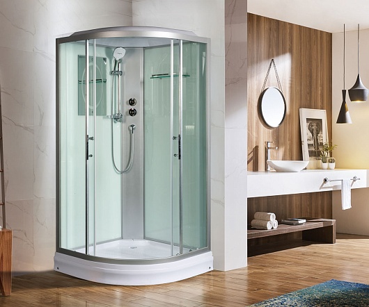 Профиль кабины изготовлен из анодированного алюминия, собран по технологии бессиликоновой сборки, что свидетельствует о высоком классе надёжности и герметичности кабины. Вся фурнитура в душевой также выполнена из металла. Латунный смеситель имеет резьбовые выходы.