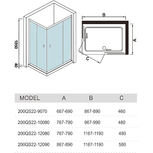WeltWasser Душевое ограждение WW200 200QS22-12090