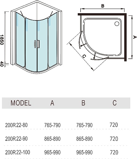 Душевой уголок WeltWasser WW200 200R22-90 90x80 - арт. 10000002935.