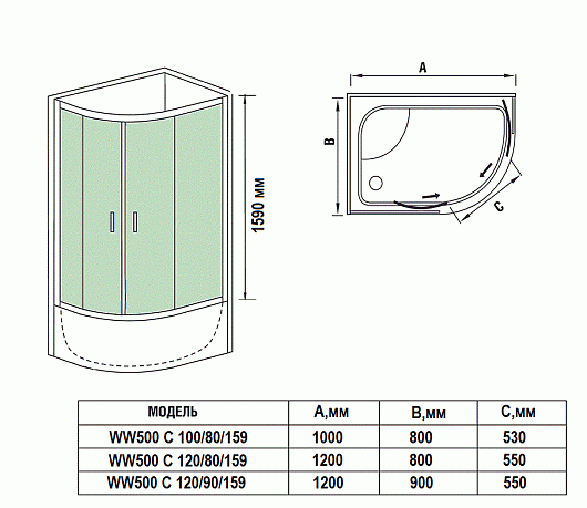 WeltWasser Душевой уголок WW500 С 120/80/159