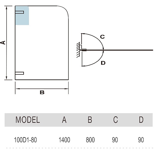 WeltWasser Шторка на ванну WW100 100D1-80