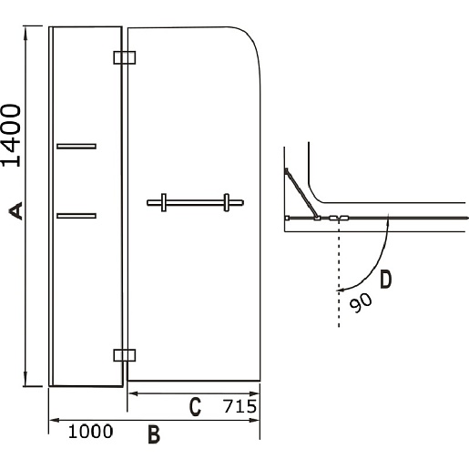 WeltWasser Шторка на ванну WW100 100D2AK-100