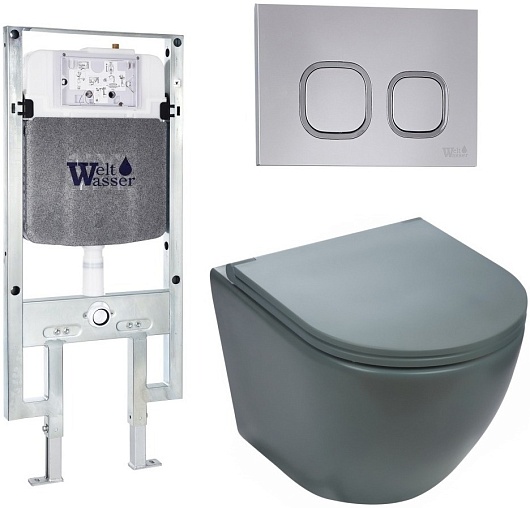 WeltWasser Унитаз подвесной Merzbach 004 MT-GR в комплекте с инсталляцией Amberg 497 ST с клавишей смыва хром