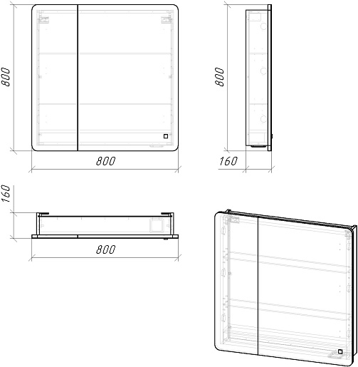 - Размер (ШxВxГ): 800x800x160 мм.