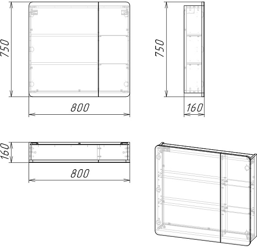 • Материал корпуса/фасада: ЛДСП / ЛДСП, зеркало.