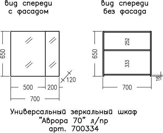 - Размер (ШxВxГ): 700x650x120 мм.
