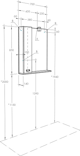 - Размеры (ШxВxГ): 700x850x140 мм.