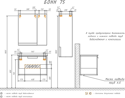 - 1 распашная дверца, 1 открытая полка.