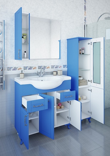 Sanflor Зеркальный шкаф Глория 85 L голубой матовый