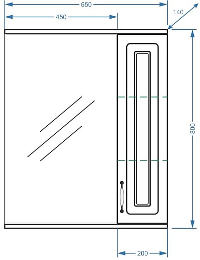 - Материал корпуса/фасада: МДФ / МДФ, зеркало.