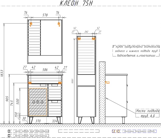 - Материал корпуса/фасада: ЛДСП / МДФ, зеркало.