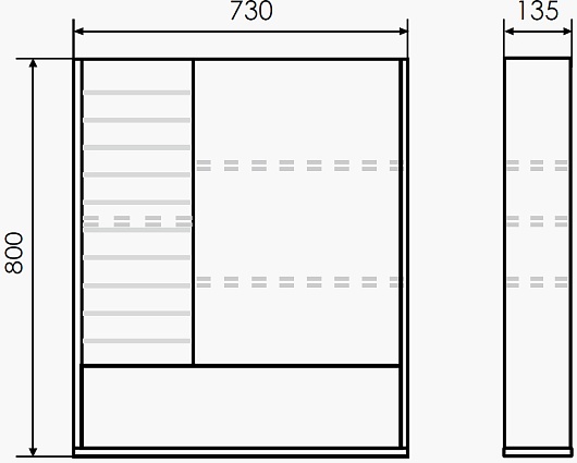 - Размер (ШxВxГ): 730x800x135 мм.