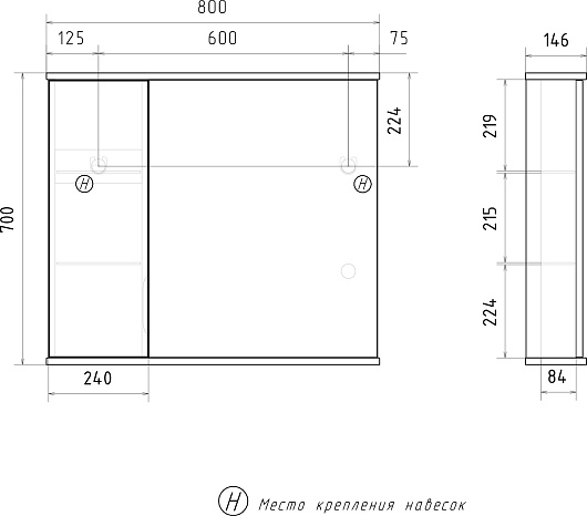 - Размер (ШxВxГ): 800x700x146 мм.