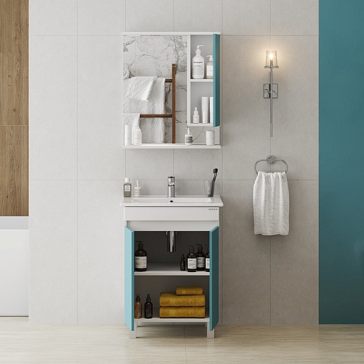Onika Зеркальный шкаф Марви 60 R белый/бирюзовый