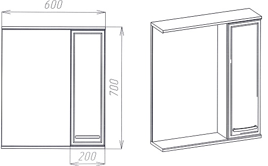 - Размер (ШxГxВ): 600x160x700 мм.