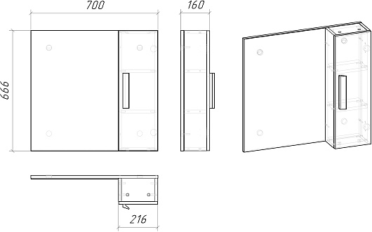 • Материал корпуса/фасада: ЛДСП / МДФ, зеркало.