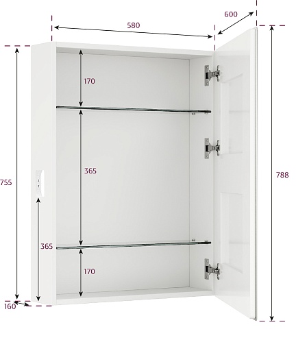 - Габариты (ШxВxГ): 600x790x160 мм.