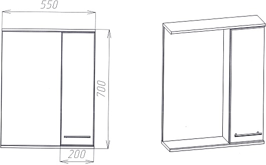 - Размер (ШxГxВ): 550x160x700 мм.