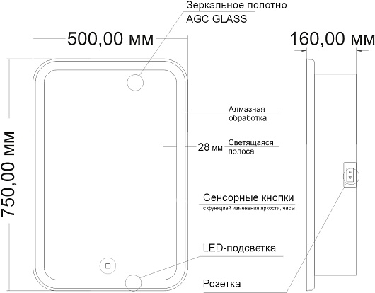 Зеркальный шкаф Mixline Премьер Фиджи 50 R - арт. 550381.