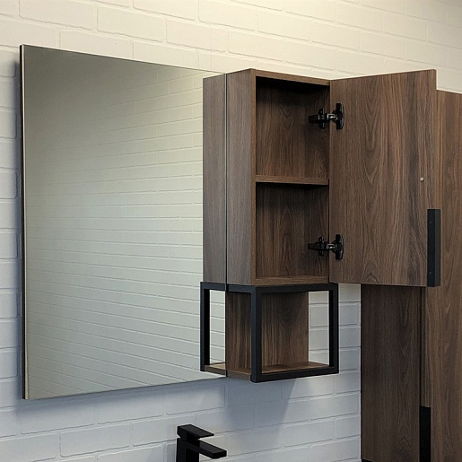 Comforty Зеркальный шкаф Равенна 90 дуб темно-коричневый/черный муар
