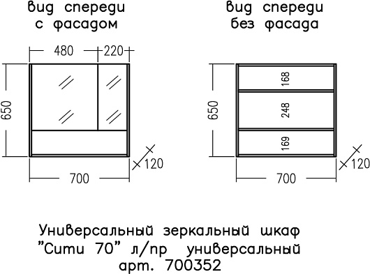 - Размер (ШxВxГ): 700x650x120 мм.