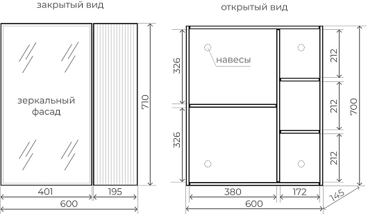 - Материал корпуса/фасада: МДФ / МДФ, зеркало.