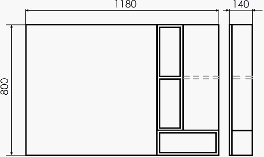 - Размер (ШxВxГ): 1180x800x140 мм.
