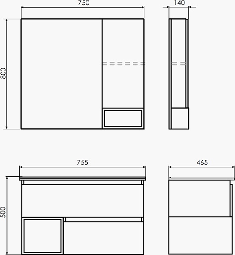- Материал корпуса/фасада: ЛДСП / ЛДСП, зеркало.