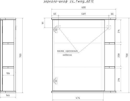 Зеркальный шкаф Volna Twing 60 - арт. szTWG60-01.