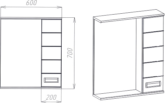 - Размер (ШxГxВ): 600x160x700 мм.