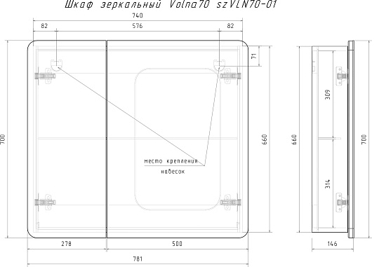 Зеркальный шкаф Volna Volna 80 - арт. szVLN80-06.
