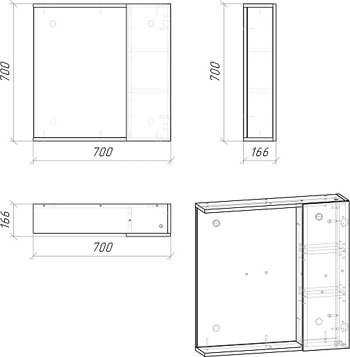 Зеркальный шкаф Grossman Юнит 70 - арт. 207011.