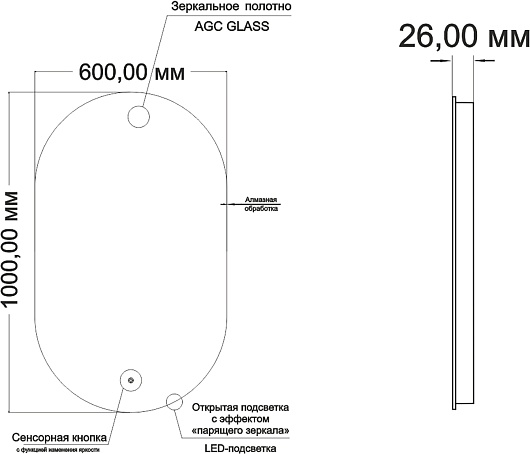 Зеркало Mixline Аккорд Алон арка 60 - арт. 550312.