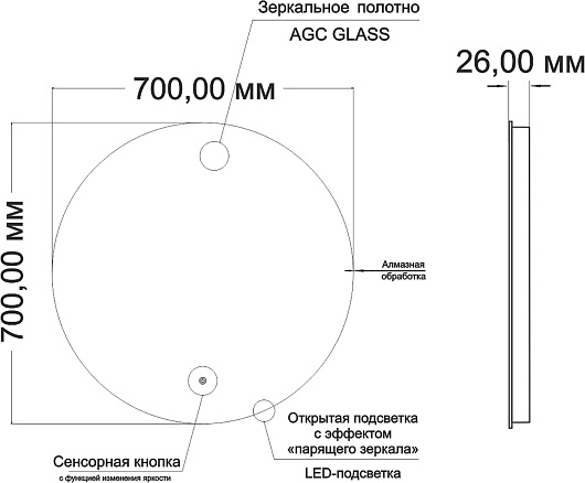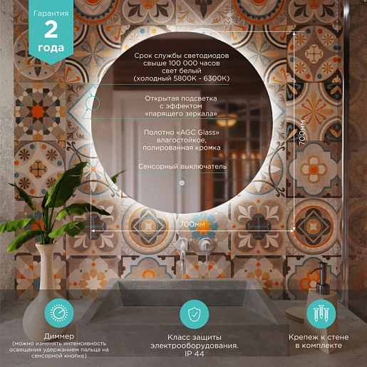 Зеркало Mixline Аккорд Алон круг 70 - арт. 550311.