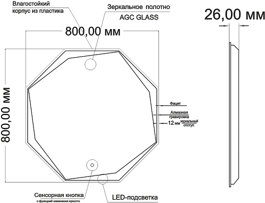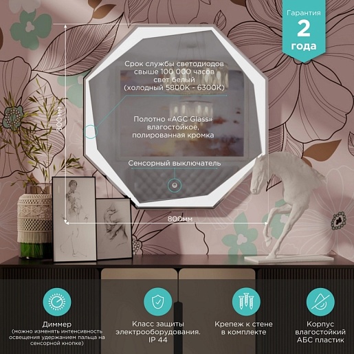 - Толщина зеркального полотна: 4 мм.