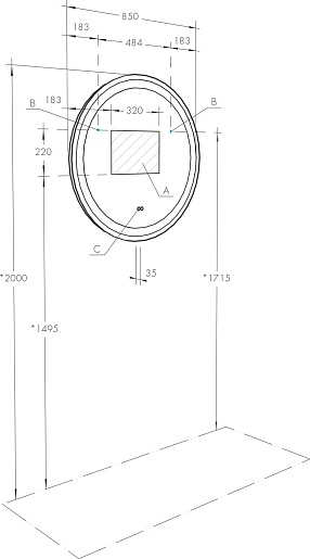 - Размер (ШxВxГ): 850x850x35 мм.