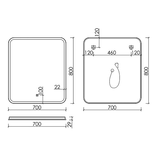 - Дополнительное оснащение зеркала: регулируемая подсветка / подвесы.