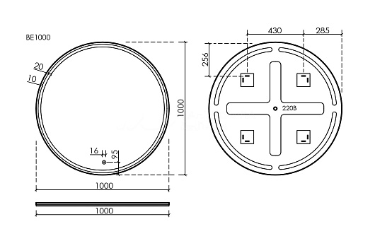 - Дополнительное оснащение зеркала: регулируемая подсветка / подвесы.